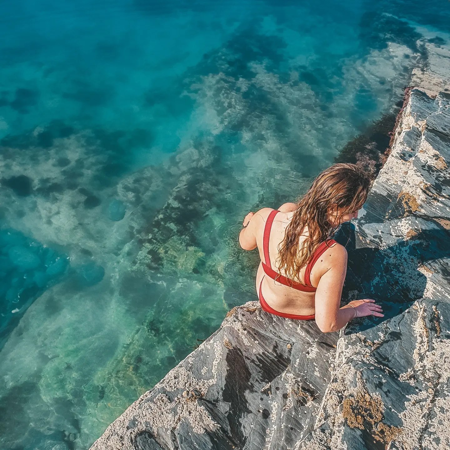 There are lots of little caves to explore, with my favourite being nestled at the South West Tip, just before Porth Island. Within the opening archway, there are two small dipping pools and beautiful views out to sea.